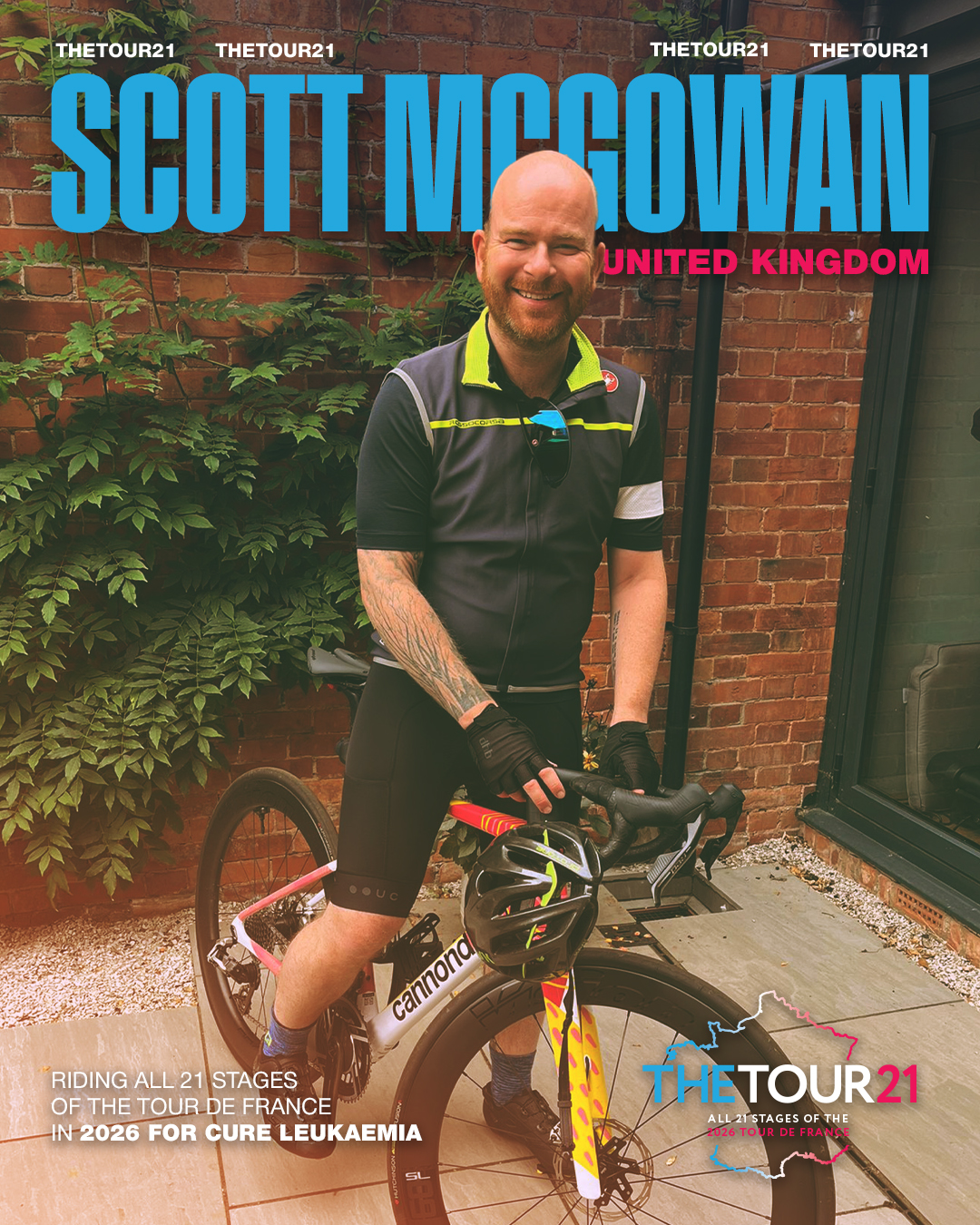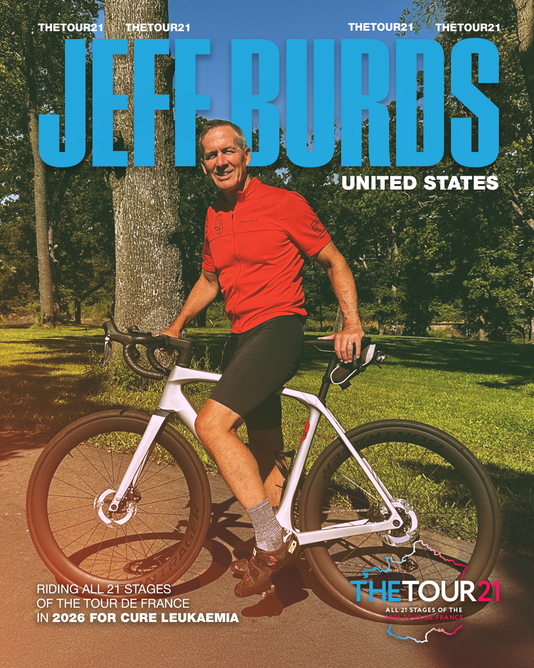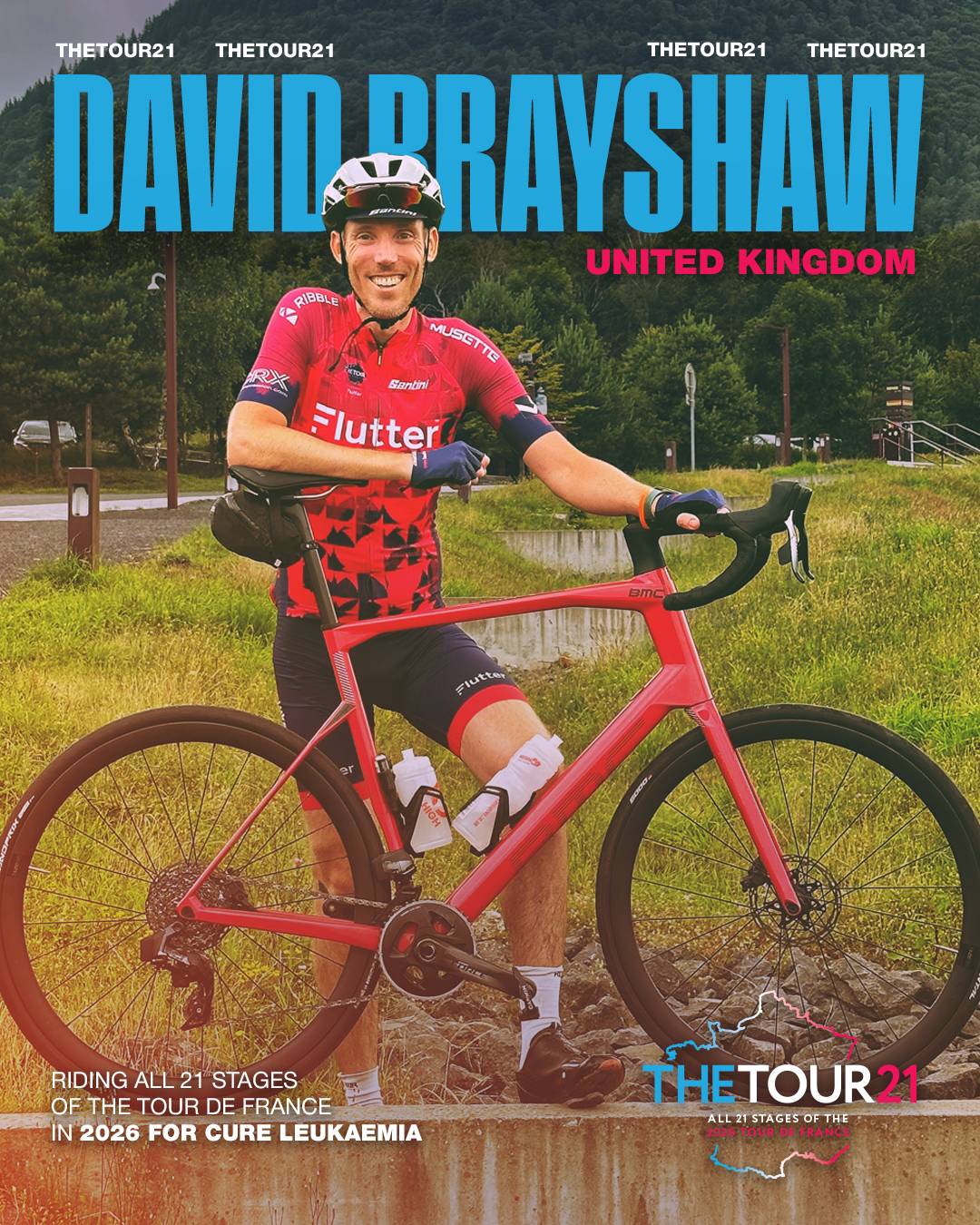 I feel proud, quite nervous, and very lucky to be part of the Tour 21 team. Taking on the full Tour de France route is an enormous challenge, but the support and spirit of the group make it feel possible. Most importantly, every stage we will ride together helps raise vital funds to give hope and progress in the fight against leukaemia — and that makes the journey truly meaningful.