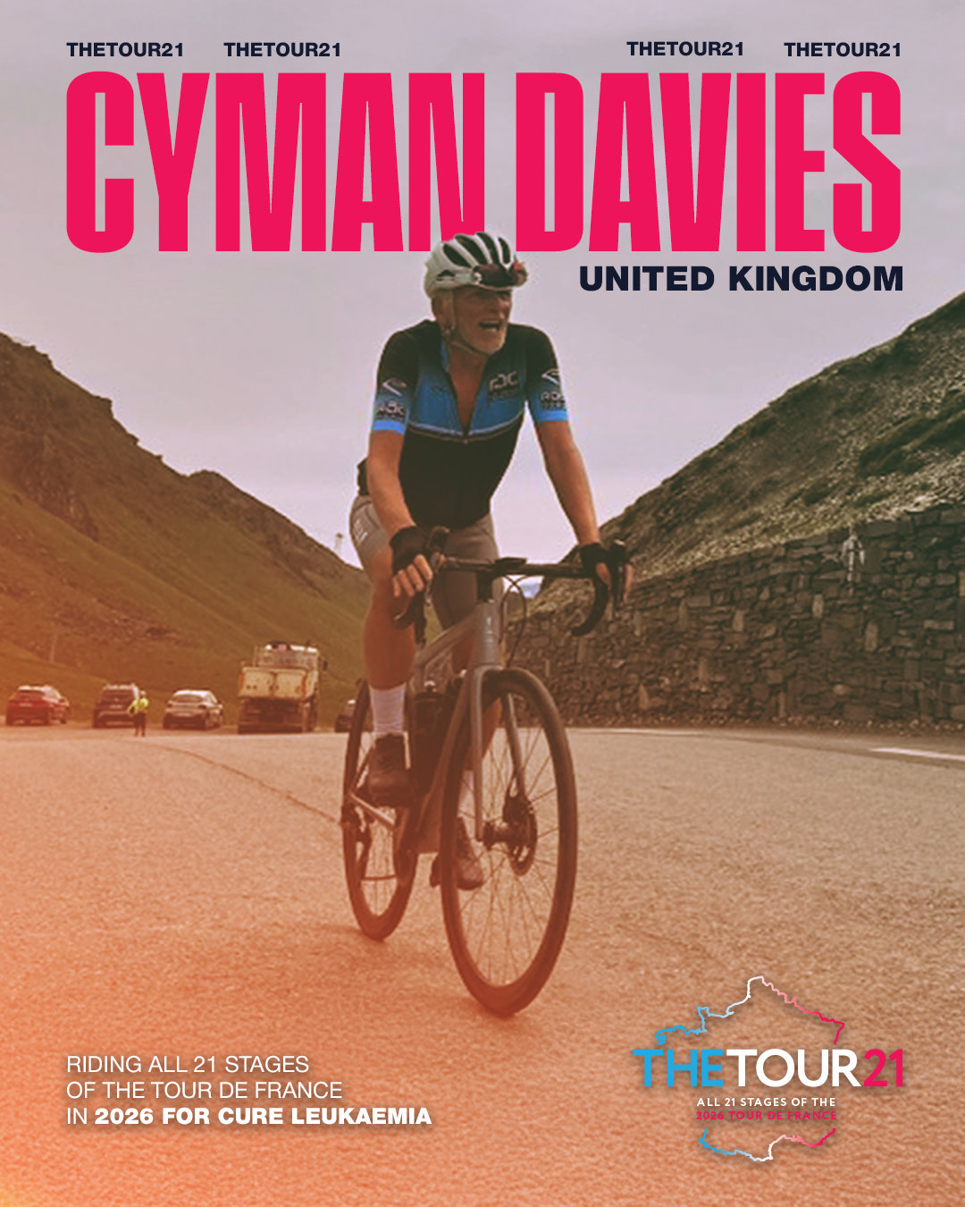 It’s a great privilege to be riding for the T21 team again in 2026!  I’m sure there’ll be tough days ahead but I’m looking forward to another adventure, and to raising money to support Cure Leukaemia’s fantastic work in tackling blood cancer.